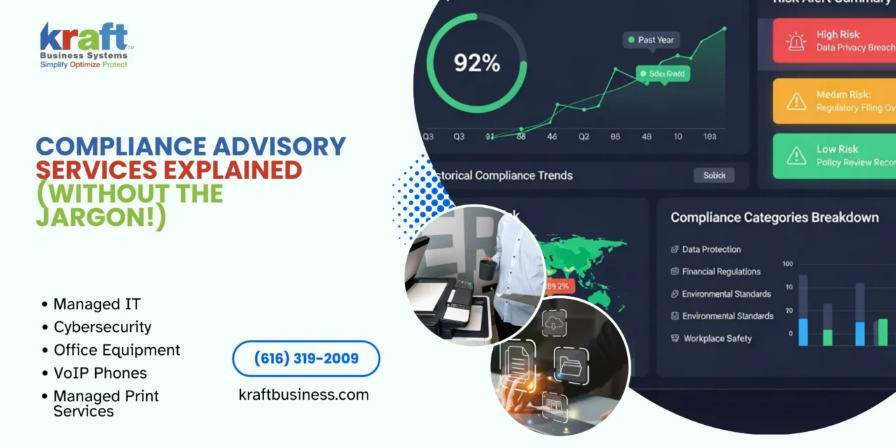 For businesses throughout Michigan and beyond—whether you’re in Grand Rapids, Detroit, Ann Arbor, or anywhere else—aligning your technology infrastructure with stringent compliance requirements doesn’t have to feel overwhelming. At Kraft Business Systems, we understand that effective compliance starts with secure, well-managed technology. Our custom IT and cybersecurity solutions ensure you have the technological foundation needed to support robust compliance programs while keeping you secure and ready for whatever the future brings.